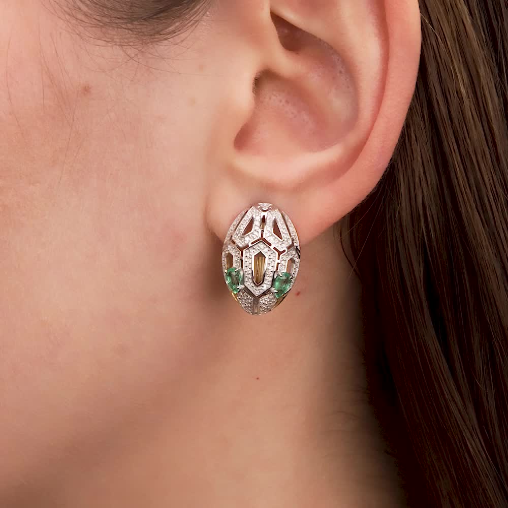 Золотые серьги с бриллиантами природными и изумрудами природными