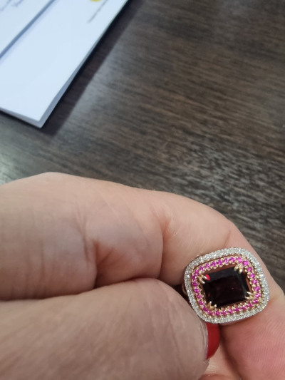 - Бриллиант природный, Гранат природный, Рубин выращенный