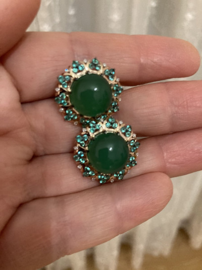 Великолепные ! Пышные ! Роскошные ! Мечта любой девчонки ! Камни - агаты прекрасной каратности кабошоны . Изумруды и бриллианты - натуральные ! Сочетание изумительное ! Взяли гарнитур ! Кто любит необычные и дорогие вещицы , которые должны быть в шкатулочке каждой леди , советую рассмотреть этот прекрасный шедевр . Камера , к сожалению не передает весь шарм украшения .