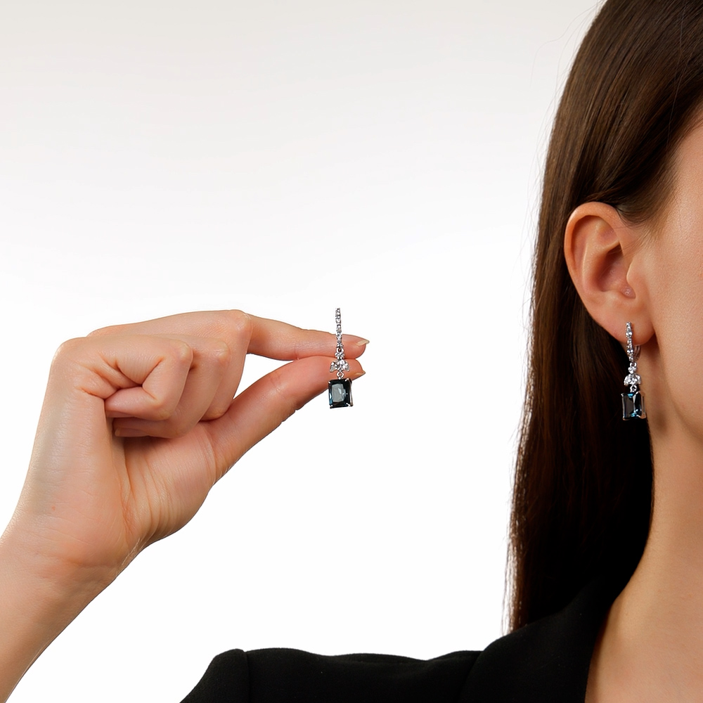 Серьги с 2 топазами лондон природными, 7.44 карат;