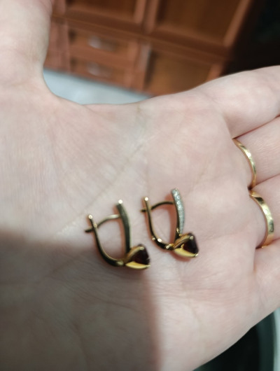 Долго присматривалась к этим серёжкам, купила и не пожалела. Красивые, среднего размера. Гранаты глубокого цвета, бриллиантики хоть и очень мелкие, но сверкают. Рекомендую к покупке. Вес 3,38гр. 👌👍♥️