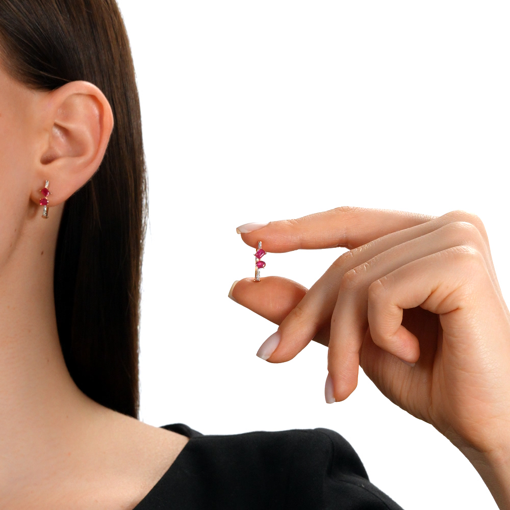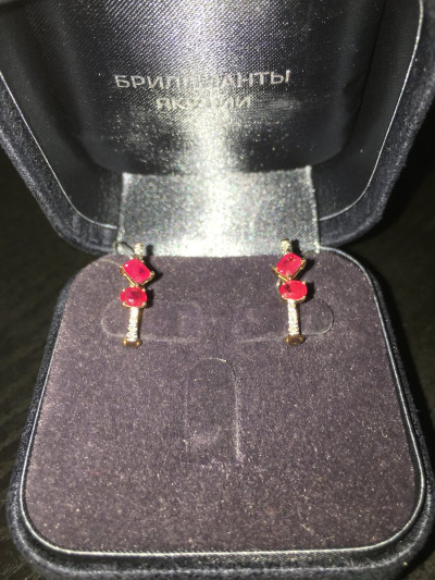 Очень нравится дизайн изделия. На серёжке 2 рубинчика, хоть и не лучшей прозрачности, но разной огранки ( октагон и овал), и они они так выигрышно расположены! Высота изделия 16 мм, размер рубинов 5/3 мм. Блеск бриллиантов добавляет лоска украшению. Спасибо SL за прекрасное предложение!