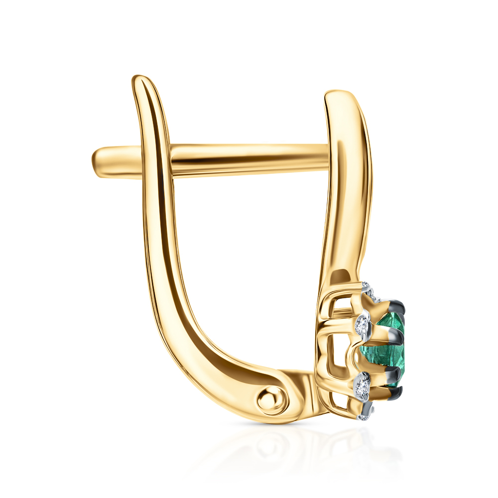 Золотые серьги с бриллиантами природными и изумрудами природными