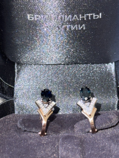 Золотые серьги с бриллиантами природными и сапфирами природными