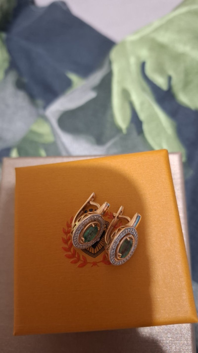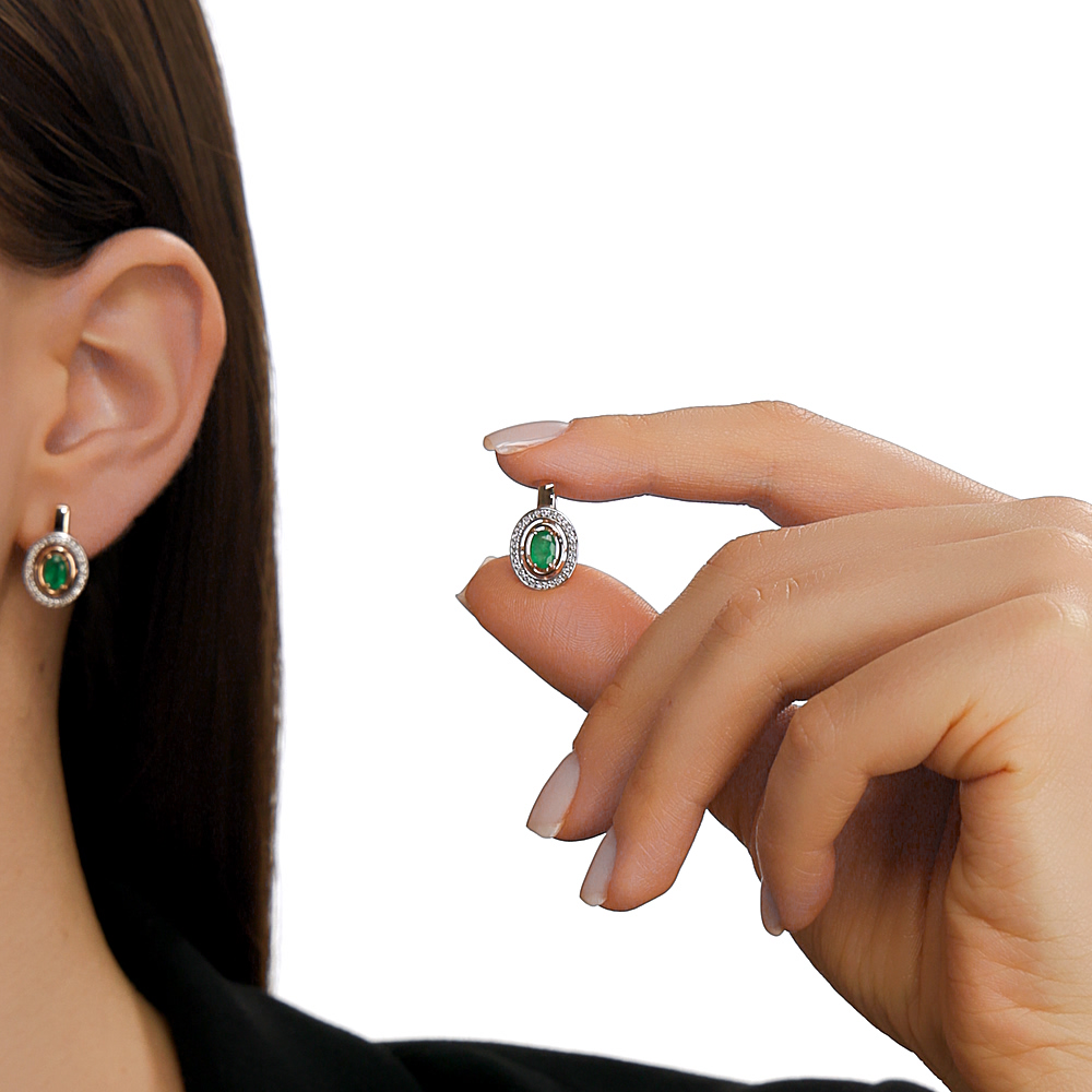 Золотые серьги с бриллиантами природными и изумрудами природными