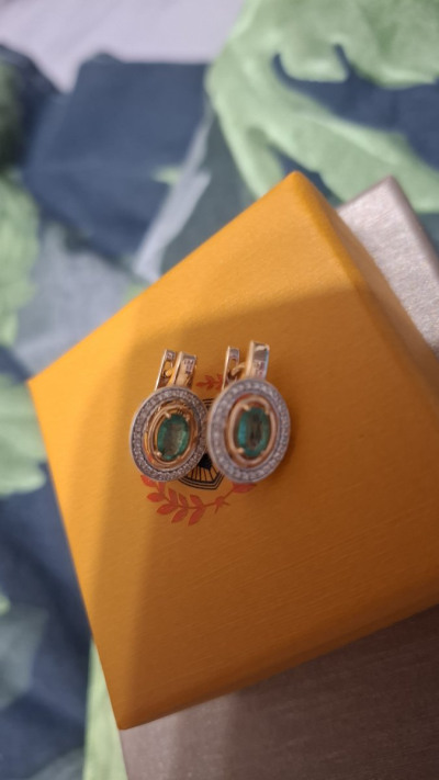 2 изумрудами природными, 0.8 карат, цвет 3, чистота 3, тип огранки Б;