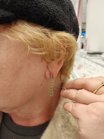 Серьги с 2 изумрудами природными, 0.29 карат, цвет 3, чистота 3, тип огранки В;