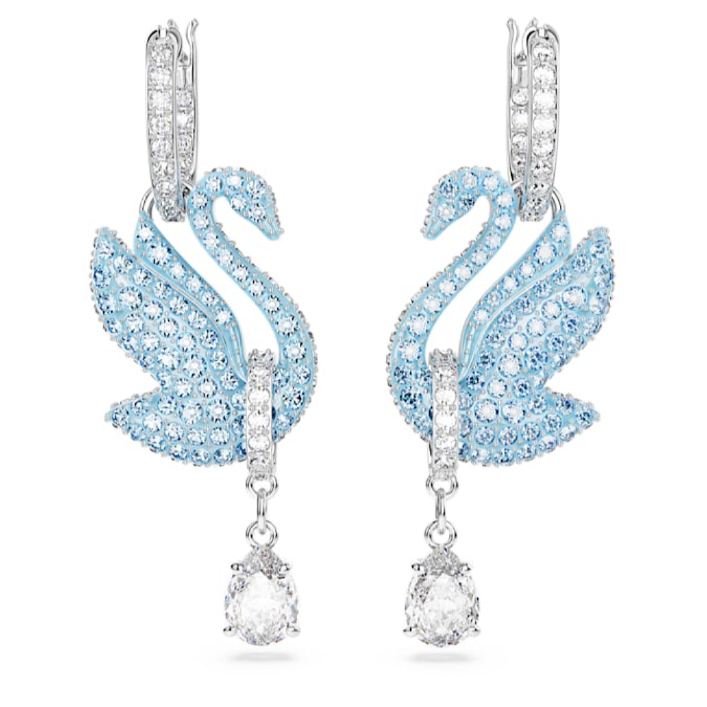 Очаровательные серьги от бренда SWAROVSKI, выполненные из нержавеющей стали с родиевым покрытием , из коллекции Iconic Swan с подвесками в виде культового лебедя Swarovski, усыпанного голубыми кристаллами по всей поверхности, отличаются красотой и изяществом. Внизу серьги украшены кристаллом грушевидной огранки, отражающим свет. Эффектный аксессуар станет прекрасным дополнением вашего образа. Вид застёжки – булавка. Гарантия 14 дней