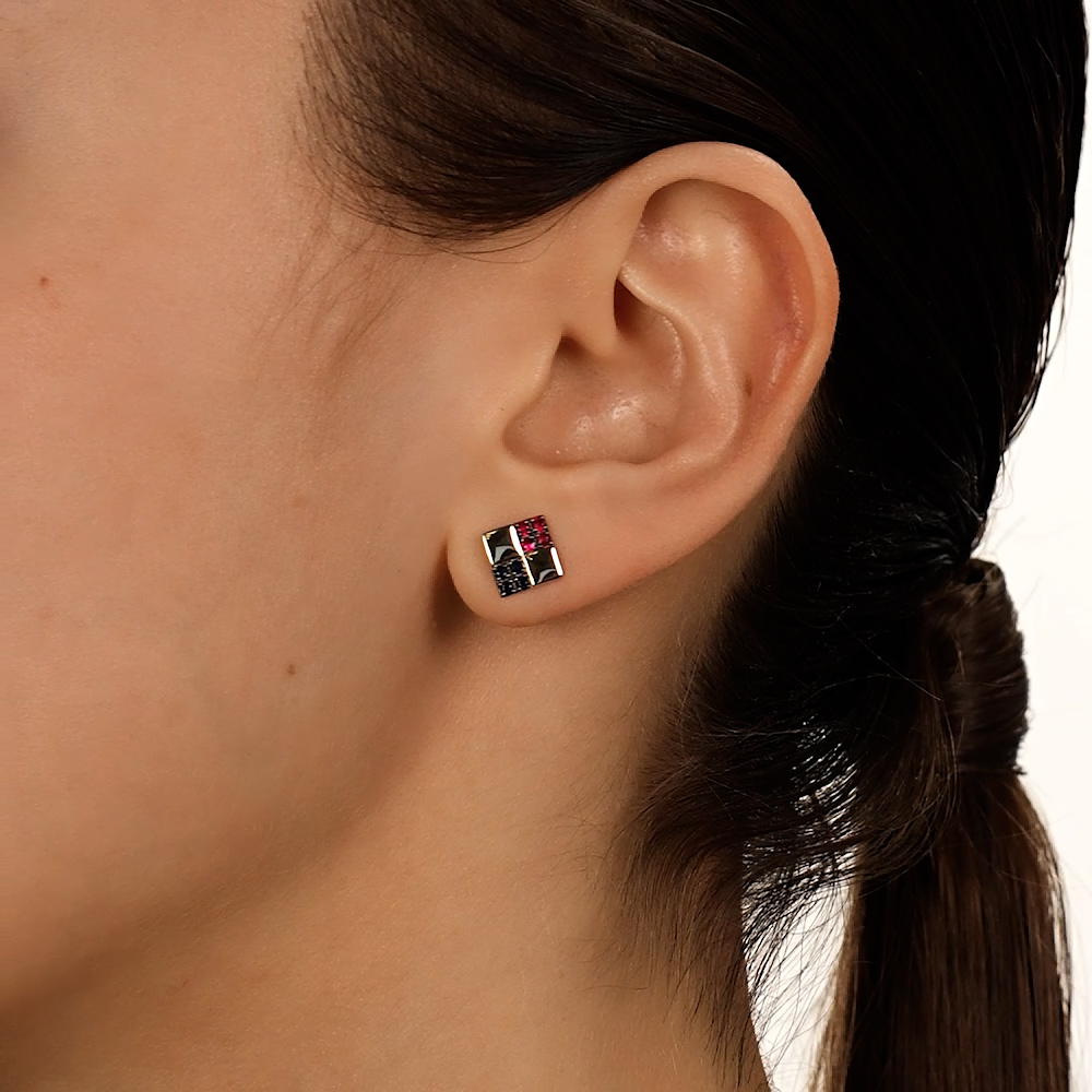 Золотые серьги с сапфирами природными и рубинами природными