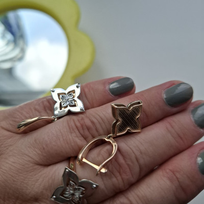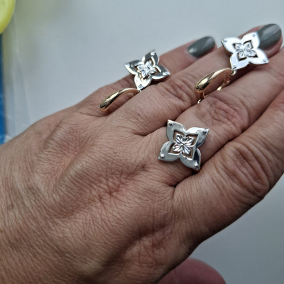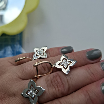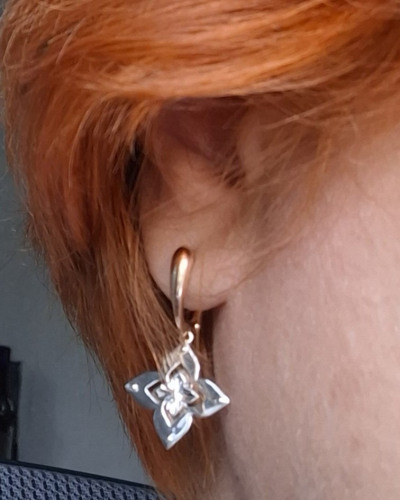 Купила комплект обалденный, серьги из белого и розового золота, очень необычно сделаны, не мелкие , удобно сели в уши, застежки хорошие по хорошей скидке, спасибо.