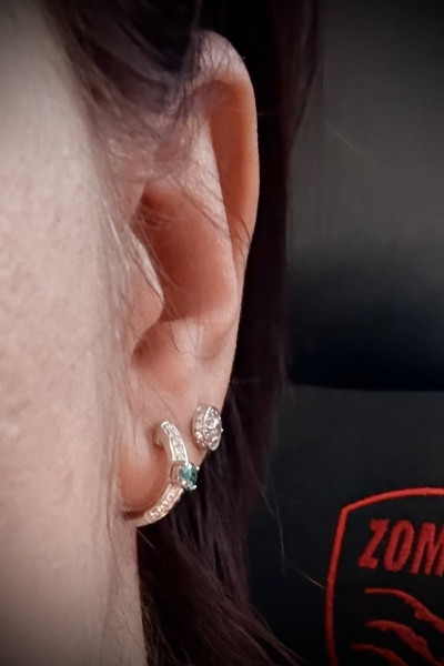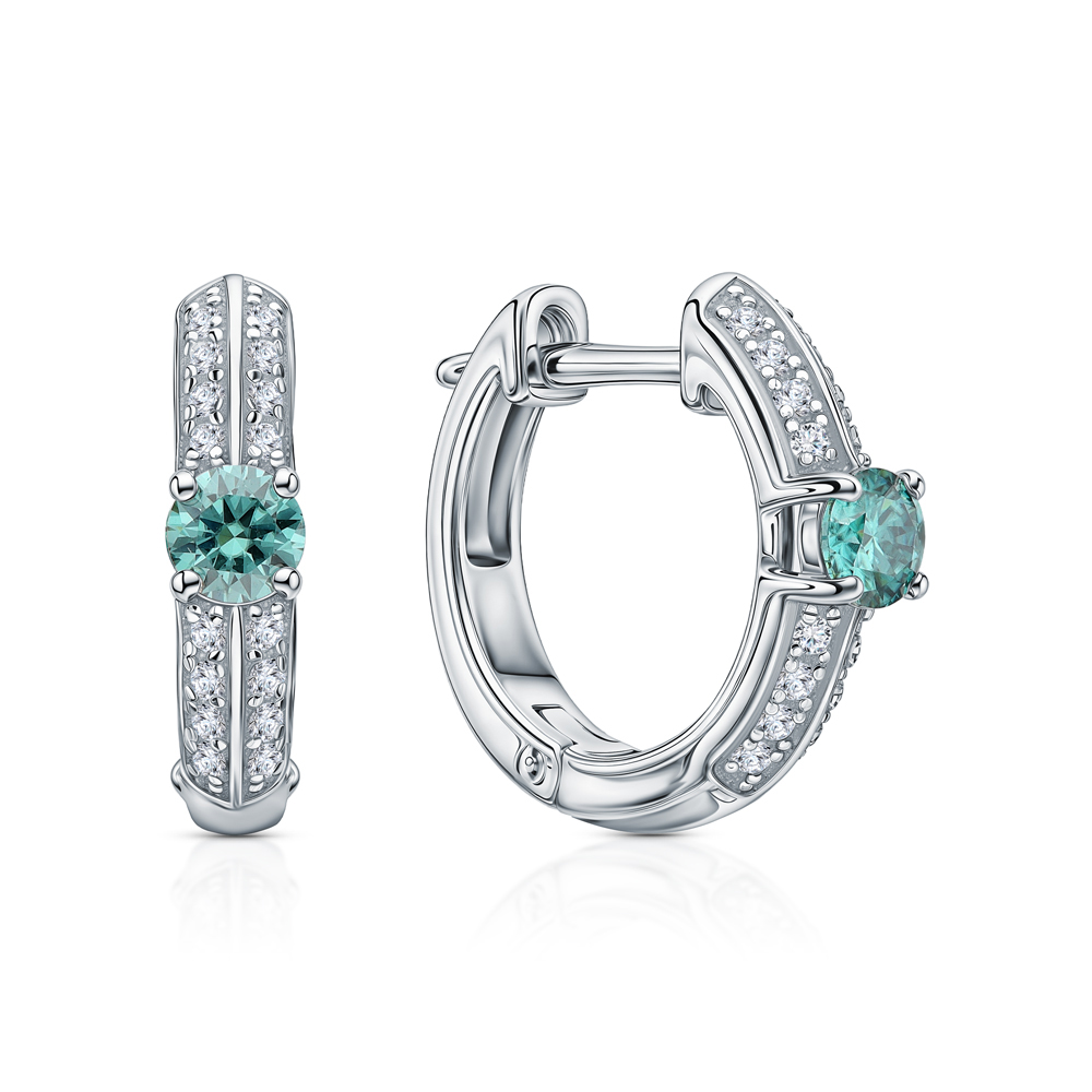 Серебряные серьги с фианитами и муассанитами параиба