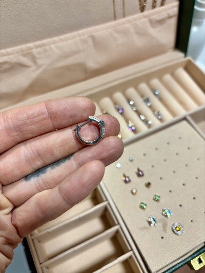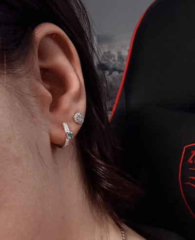 Покупала в комплекте с кольцом. Серьги и колечко очень сдержанные и милые. Не броские. Середки в формате Конго мне на ухо подошли, но вслепую брать не рекомендую- они могут быть вам «малы»
