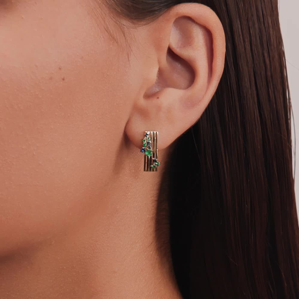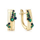 Серьги с 2 изумрудами природными, 0.09 карат, цвет 3, чистота 3, тип огранки В;