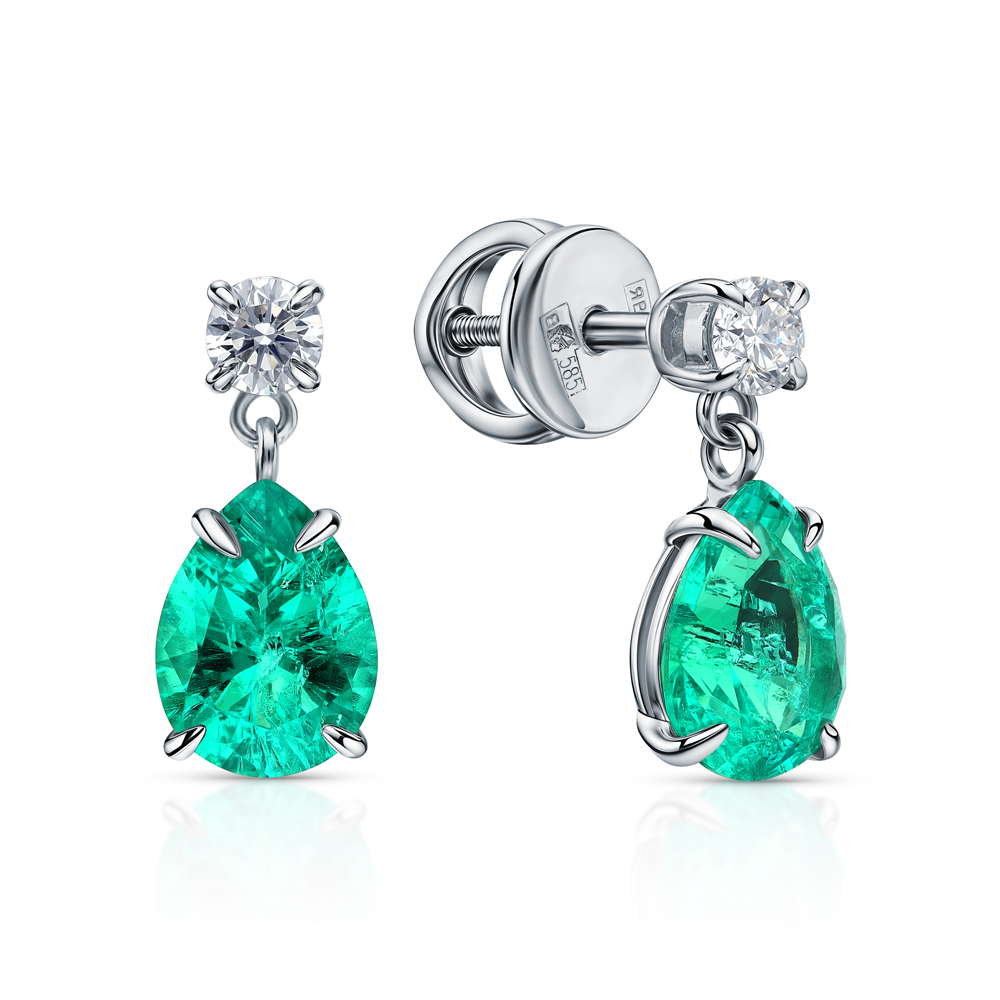Серьги с 2 изумрудами выращенными Колумбия, 1.87 карат;