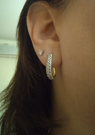 Серьги с 56 бриллиантами природными, 0.27 карат, огранка круг 17 граней, цвет 2, чистота 2, тип огранки А;