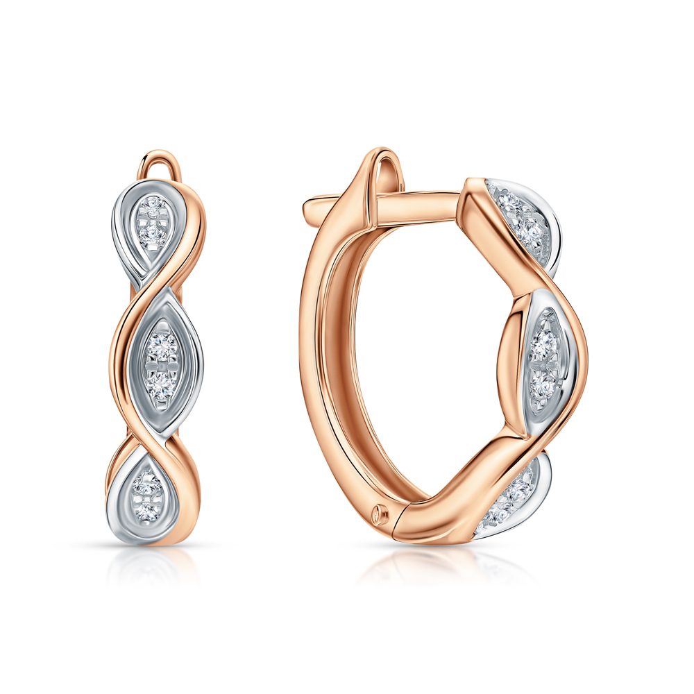 Серьги с 12 бриллиантами природными, 0.05 карат, огранка круг 17 граней, цвет 2, чистота 2, тип огранки А;