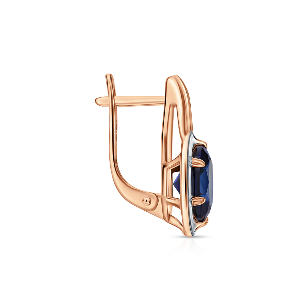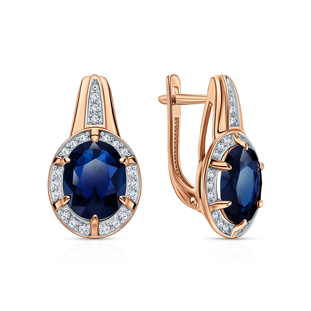 Золотые серьги с бриллиантами природными и сапфирами синтетическими звездчатыми