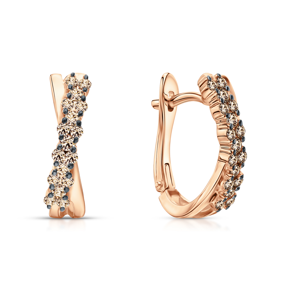 Серьги с 10 бриллиантами коньячными природными, 0.22 карат, огранка круг 57 граней, цвет 7, чистота 6, тип огранки А;