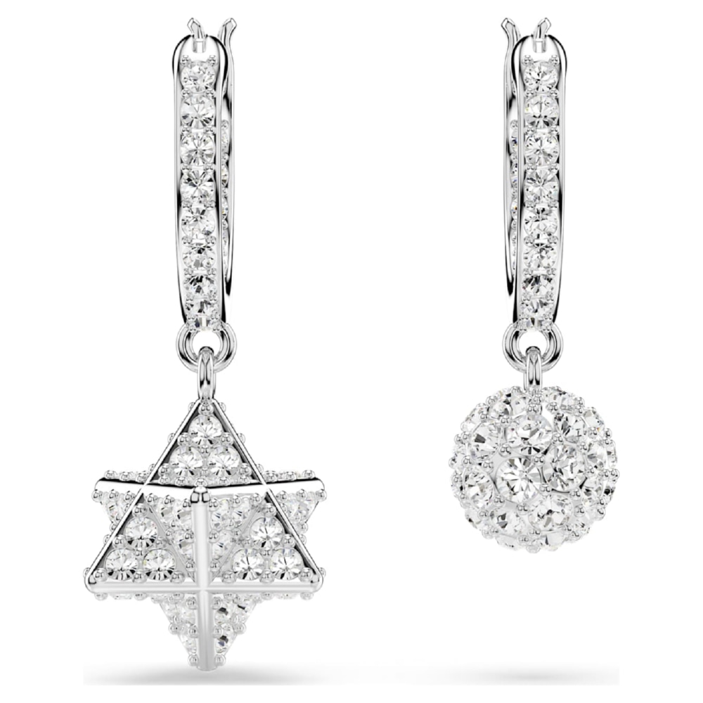 Замысловатые серьги от бренда SWAROVSKI, выполненные из нержавеющей стали с родиевым покрытием, из коллекции Dextera подчеркивают прекрасное взаимодействие света и геометрии. Асимметричный комплект включает в себя 3D-звезду и сферу, каждая из которых украшена паве из мерцающих прозрачных кристаллов. Уникальные изделия обязательно взбудоражат воображение. Вид застёжки – булавка. Гарантия 14 дней