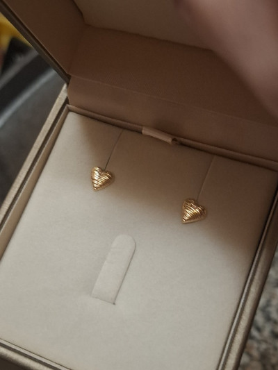 Очень красивые и милые сережки! Взяли с подругой себе для 2го прокола, теперь хочу и полноценную пару!)) Вес небольшой 0.62 но смотряся на ушке не маленькими! Внутри пустотелые Жаль нет таких серег 585пробы(( зато цена "не кусается"))
