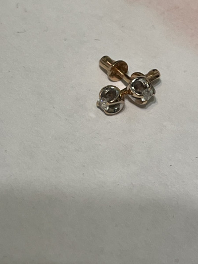Серьги с 2 бриллиантами природными, 0.11 карат, огранка круг 57 граней, цвет 3, чистота 6, тип огранки А;