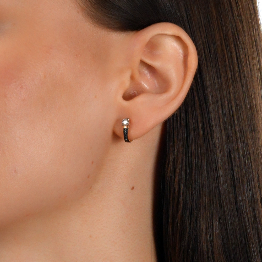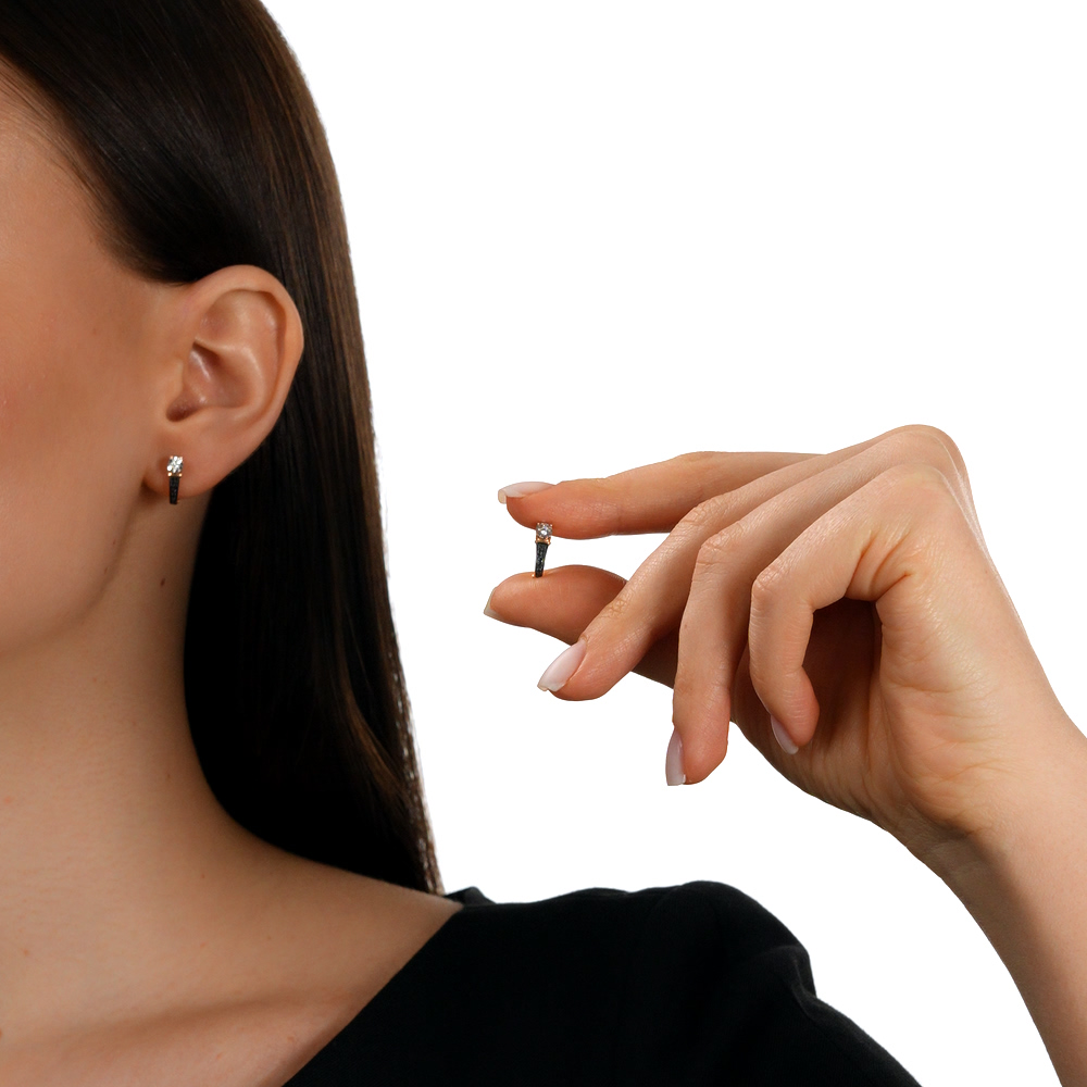 Золотые серьги с бриллиантами и бриллиантами чёрными природными