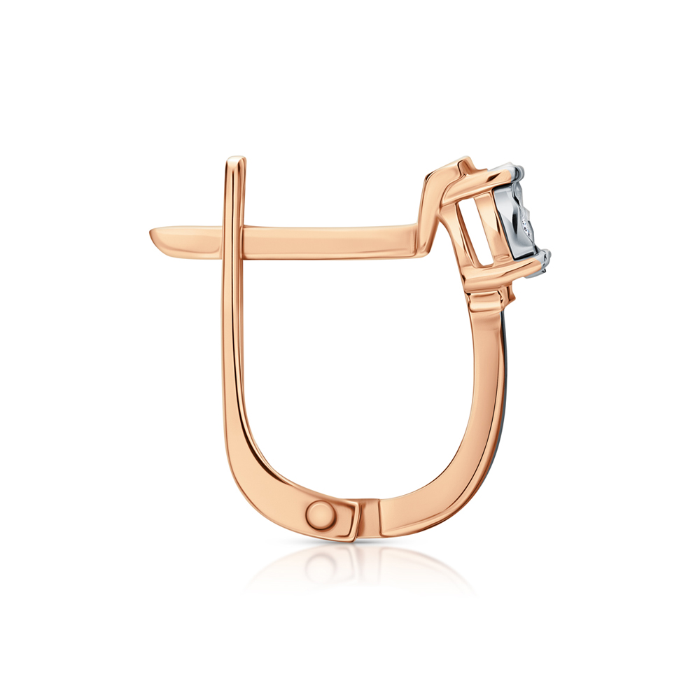 Серьги с 2 бриллиантами природными, 0.04 карат, огранка круг 57 граней, цвет 4, чистота 5, тип огранки А;
