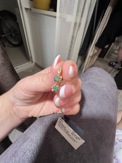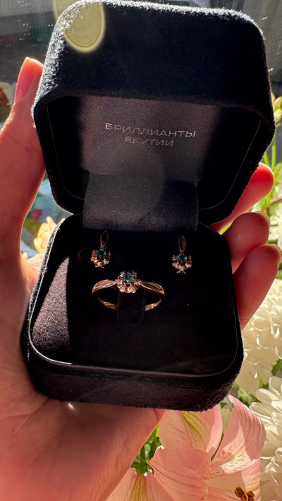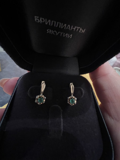 К колечку муж подарил ещё серьги, я в восторге от этого комплекта , натуральный бриллиантик и великолепный скромный но в то же время элегантный изумруд, просто кайф