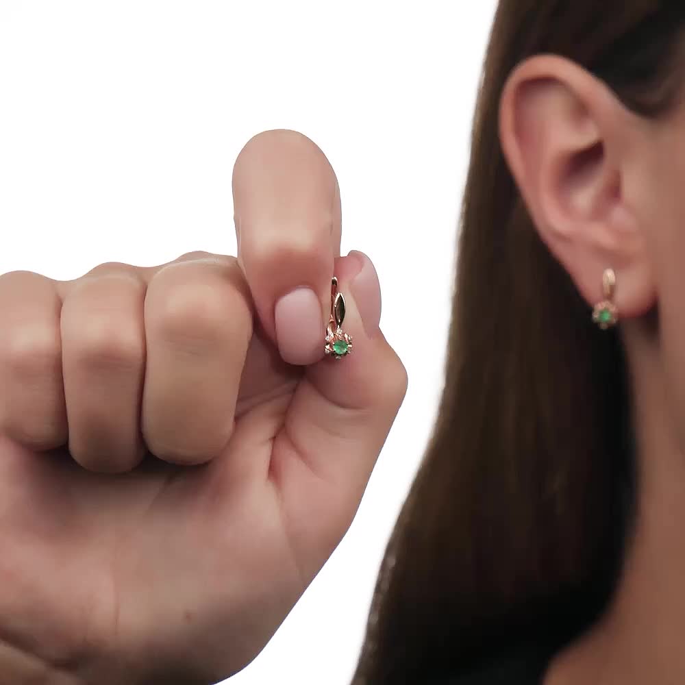 Золотые серьги с бриллиантами природными и изумрудами природными
