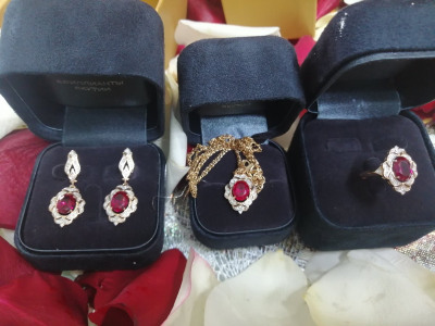 2 рубинами синтетическими, 4.23 карат, тип огранки Б;
