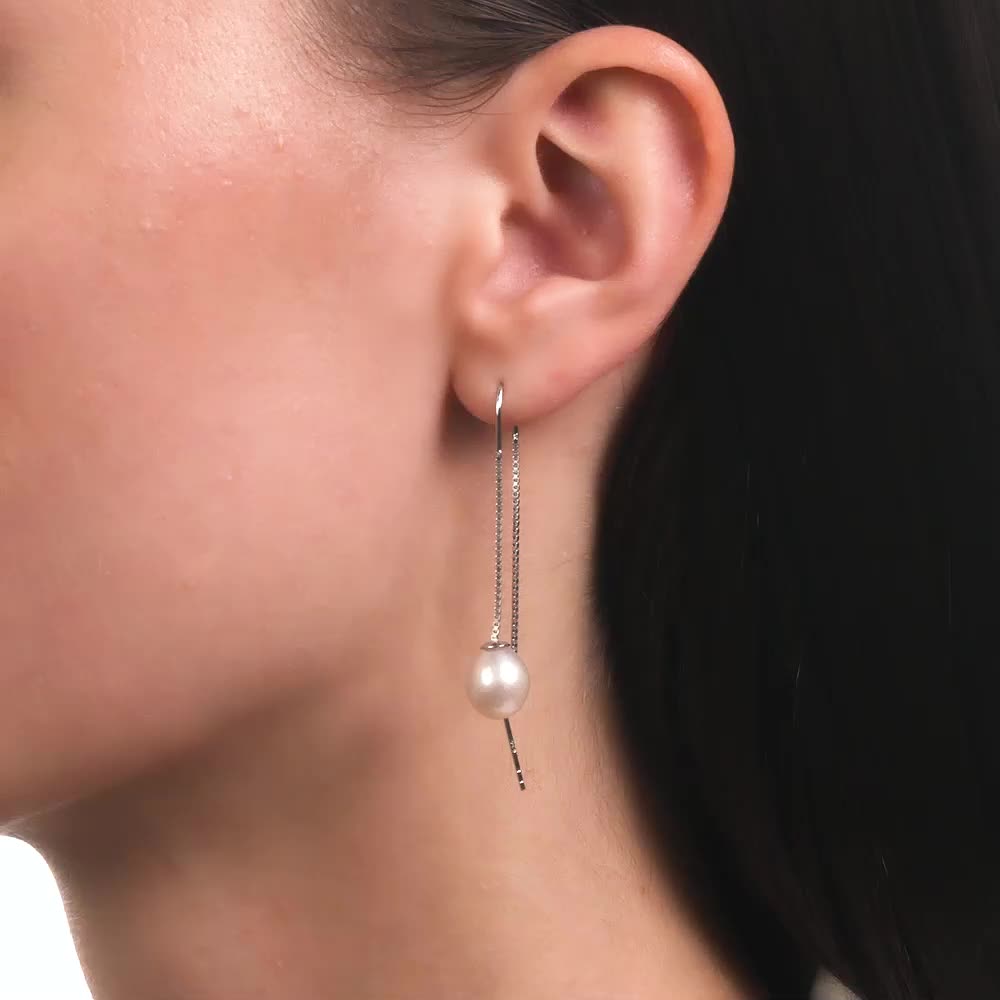 Серьги с 2 жемчугами пресноводными культ.белыми;