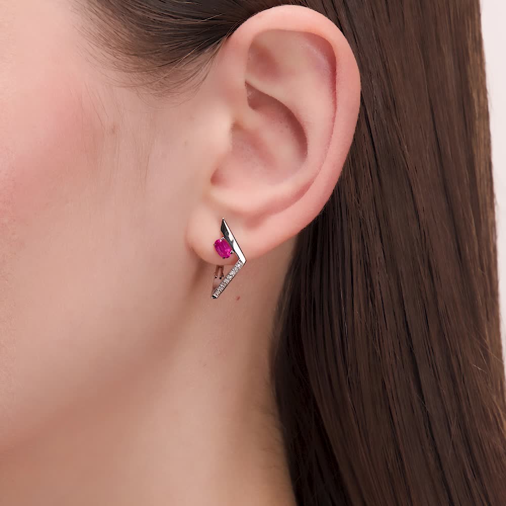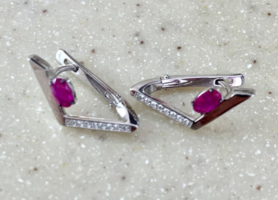 Серьги из белого золота интересного дизайна. Геометрическая форма подчёркивает красоту рубина. Очень красивые серьги. Спасибо.