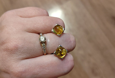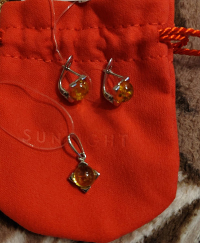 Неожиданно очень заметный и не банальный комплект, янтарь сверкает теплым жёлтым светом