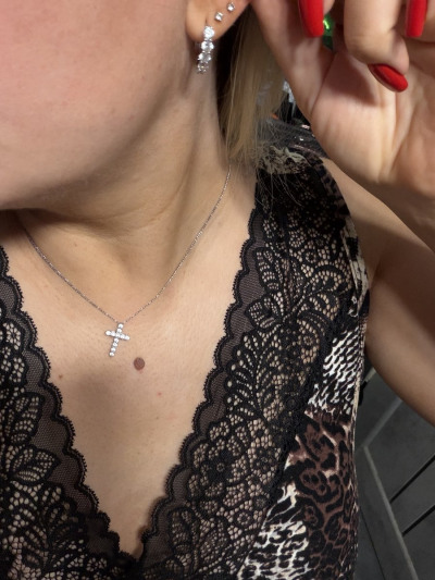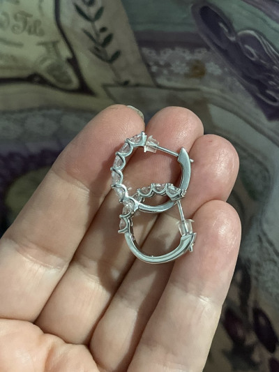 Идеальные серьги , которые подойдут под любой стиль и повод. Камни в них очень яркие. Со временем не тускнеют. На фото крестик, который я ношу уже три года и зимой и летом, моюсь под душем, купаюсь в море и хожу в фитнес. При такой интенсивной эксплуатации он выглядит как новый арт. 103641. Так вот эти серьги из таких же камешков. Они сто процентов будут хранить свой блеск и выглядеть как новые долгие годы. Подойдут только на толстую мочку, на тонкой под весом камней будут выпадать вперед , оголяя штифт.