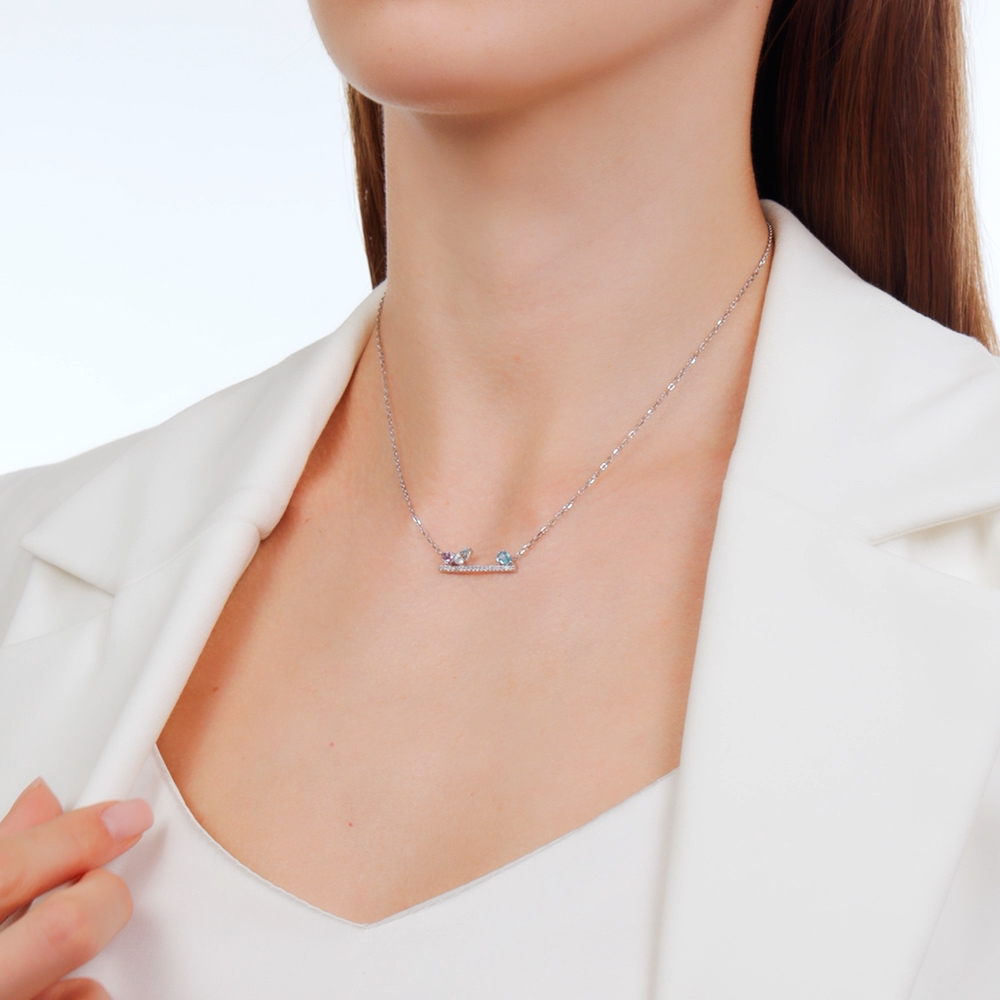 Серебряное шейное украшение с фианитами, топазами природными и аметистами природными
