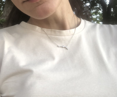 Тонкая цепочка универсального плетения, подходит ко многим колье санлайта, можно собирать комбо. Смотрится нежно и не перегружено (в отличие от моего восходящего знака близнецов, колье с этим созвездием очень нагружено выглядит), в случае с овном все очень эстетично и воздушно