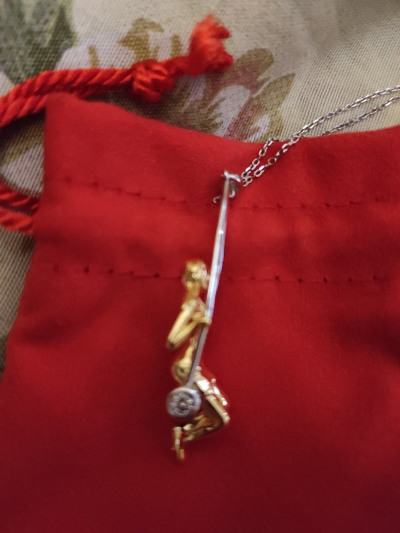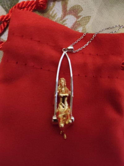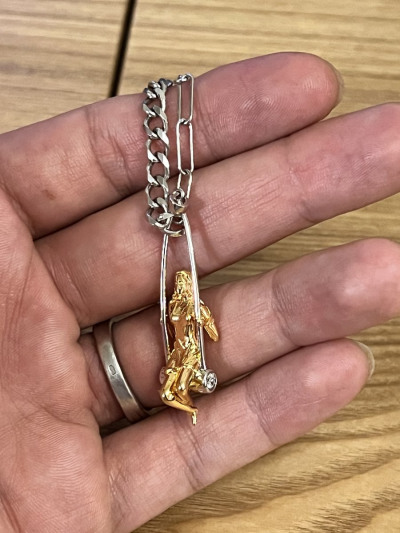Очаровательная вещица. Жаль, цепочка короткая и так просто не вытаскивается. Придется разжимать звенья. Ну или просто рвать.