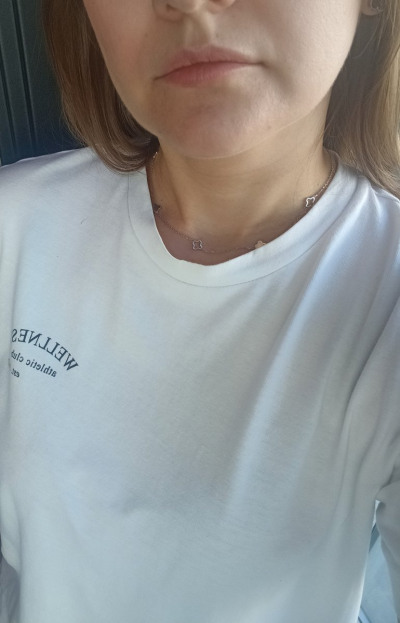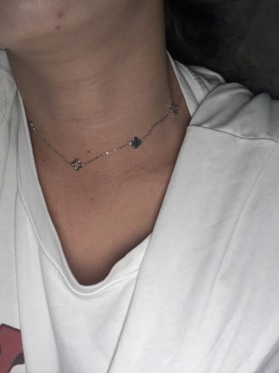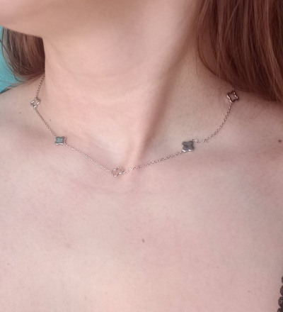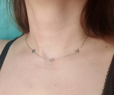 Мне нравится, что украшение лежит вокруг шеи не свисает вниз, как и хотела. Легкое, не мешает.