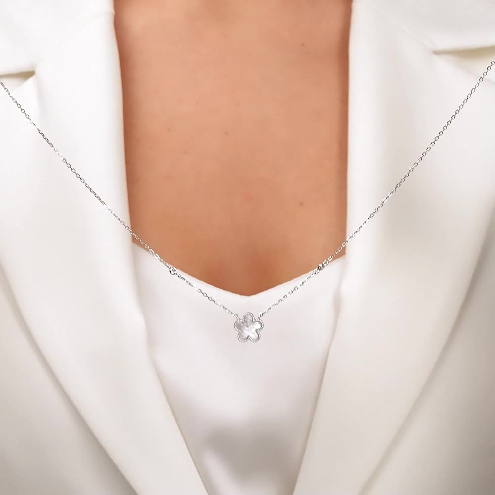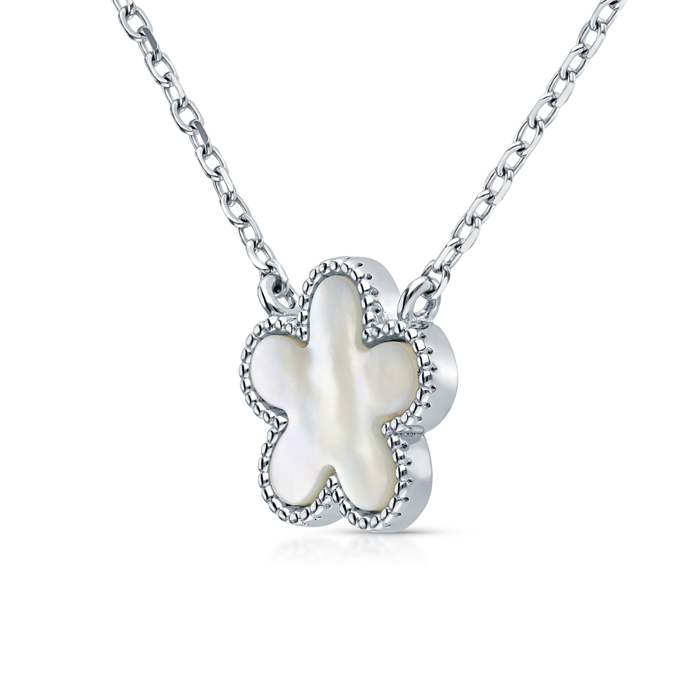 Серебряное шейное украшение с фианитами и перламутром природным