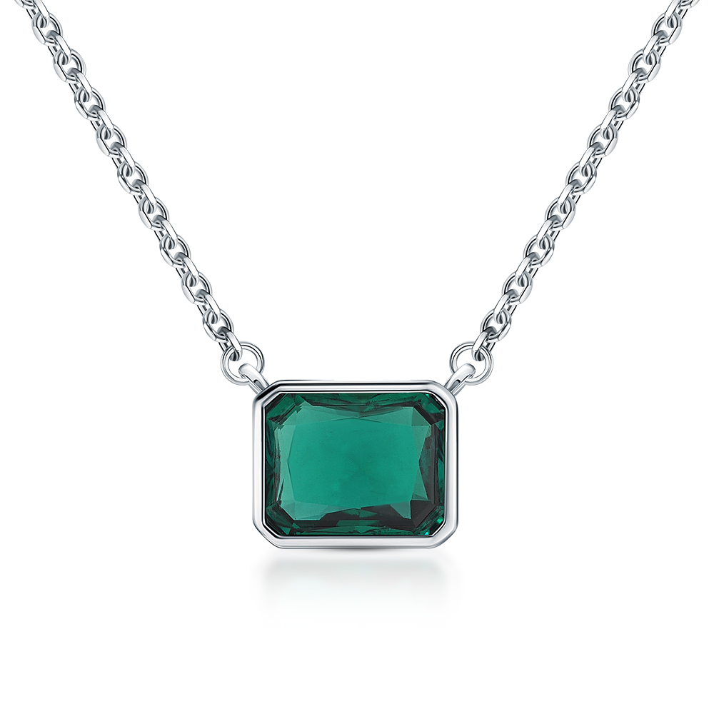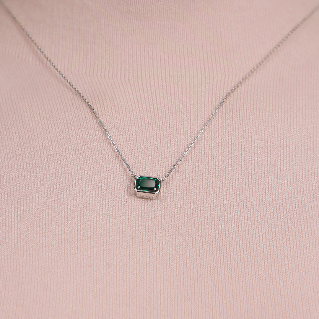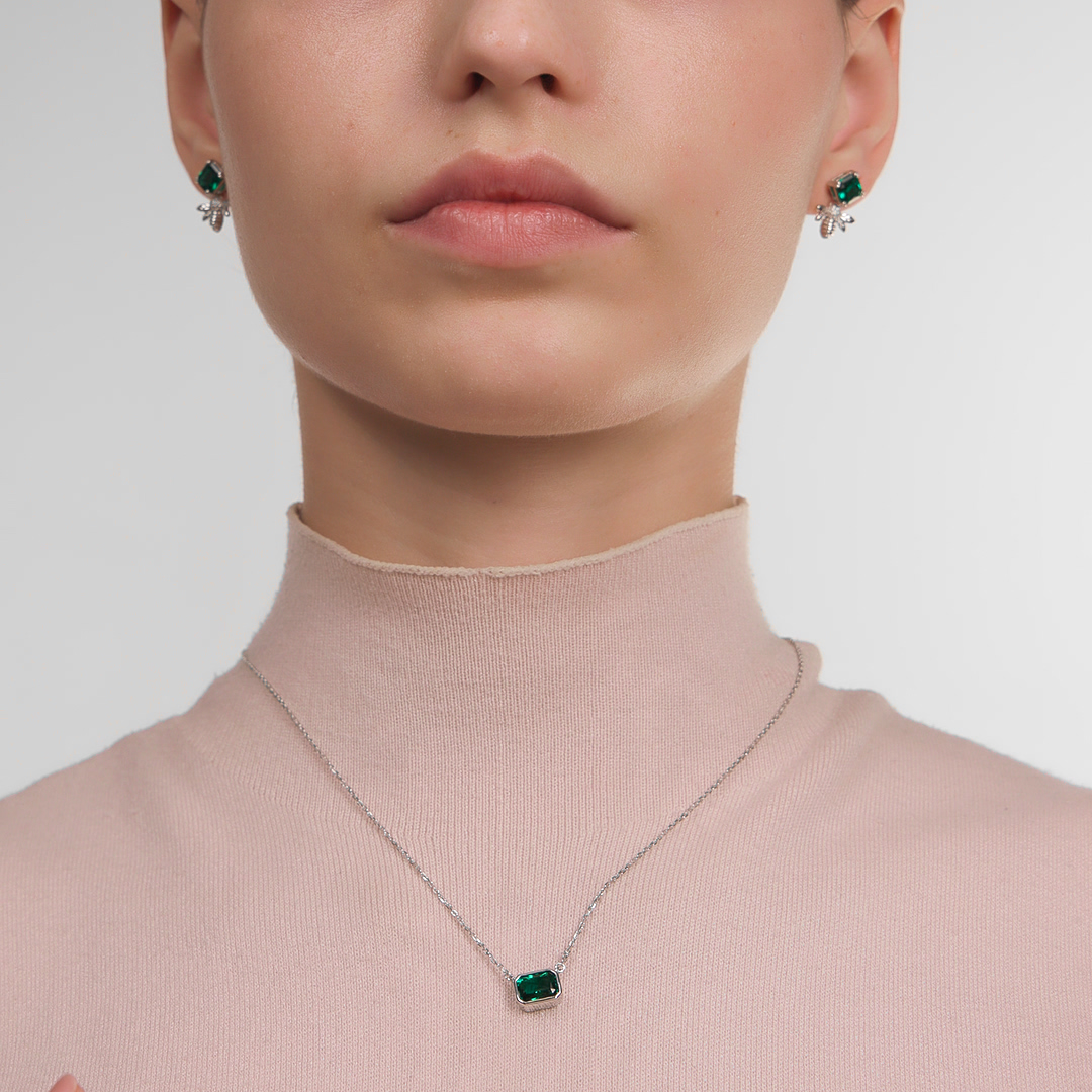 Серебряное шейное украшение с изумрудами выращенными