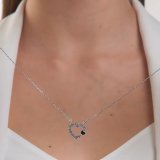 Серебряное шейное украшение с фианитами и сапфирами природными