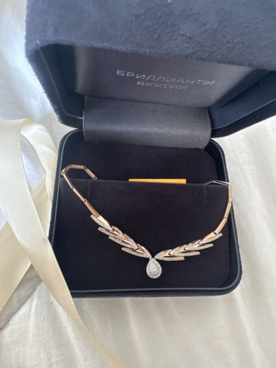 Золотое шейное украшение с бриллиантами природными