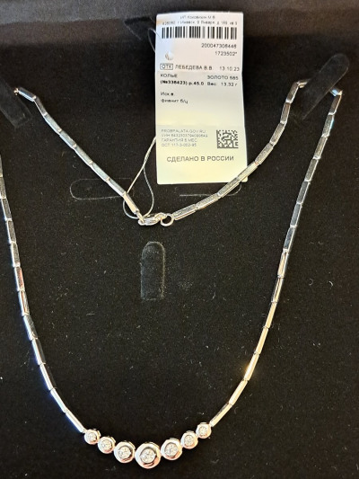Стильное, современное колье из белого золота очень красиво смотрится с браслетом.