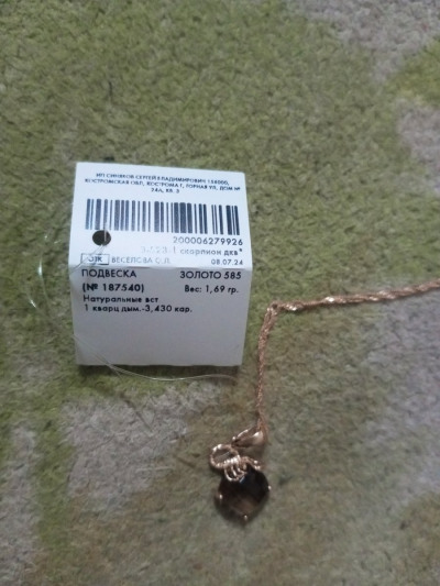 В редких случаях характеристики украшения или упаковка могут иметь отличия от представленных на фото или в описании.Подвеска с 1 кварцем дымчатым природным, 2.99 карат;
