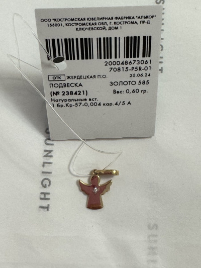 Прекрасный изящный маленький кулончик с бриллиантом. Брала в подарок крестнице. Очень красивая упаковка. Рекомендую к покупке.