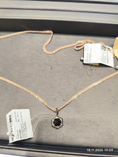 Подвеска с 50 бриллиантами черными природными облагороженными, 0.12 карат, огранка круг 57 граней, цвет 7, чистота 6, тип огранки А;