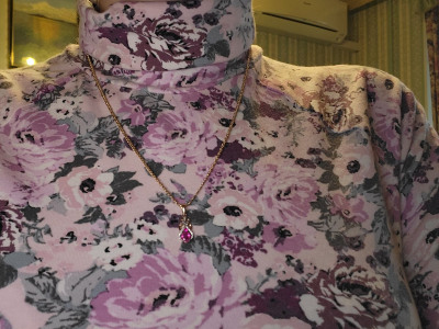Очень красивый кулон) Купила к кольцу и серьгам, подаренным родителями на Новый год. Камешки все на месте, блестят. Блеск у рубинов чуть матовый,а не кричаще яркий, как у синтетических аналогов.