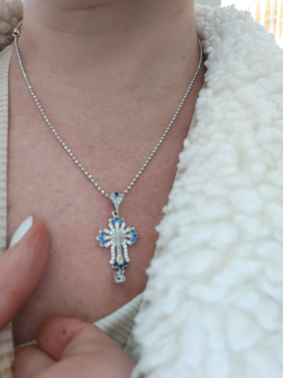 Крестик невероятно красивый, нежный, нарядный, а главное - православный и освящён в храме моего любимого святого Николая Чудотворца, о чем мне выдали сертификат с подписью священника.
