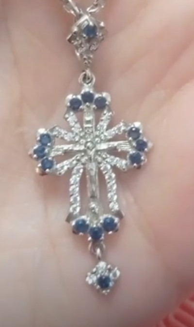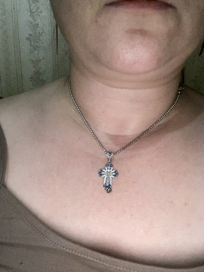 Превосходный крестик, с синим жемчугом выглядит изумительно. Восторг.