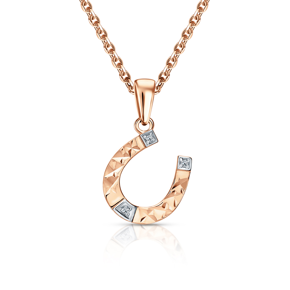 Подвеска с 3 бриллиантами природными, 0.01 карат, огранка круг 17 граней, цвет 2, чистота 2, тип огранки А;